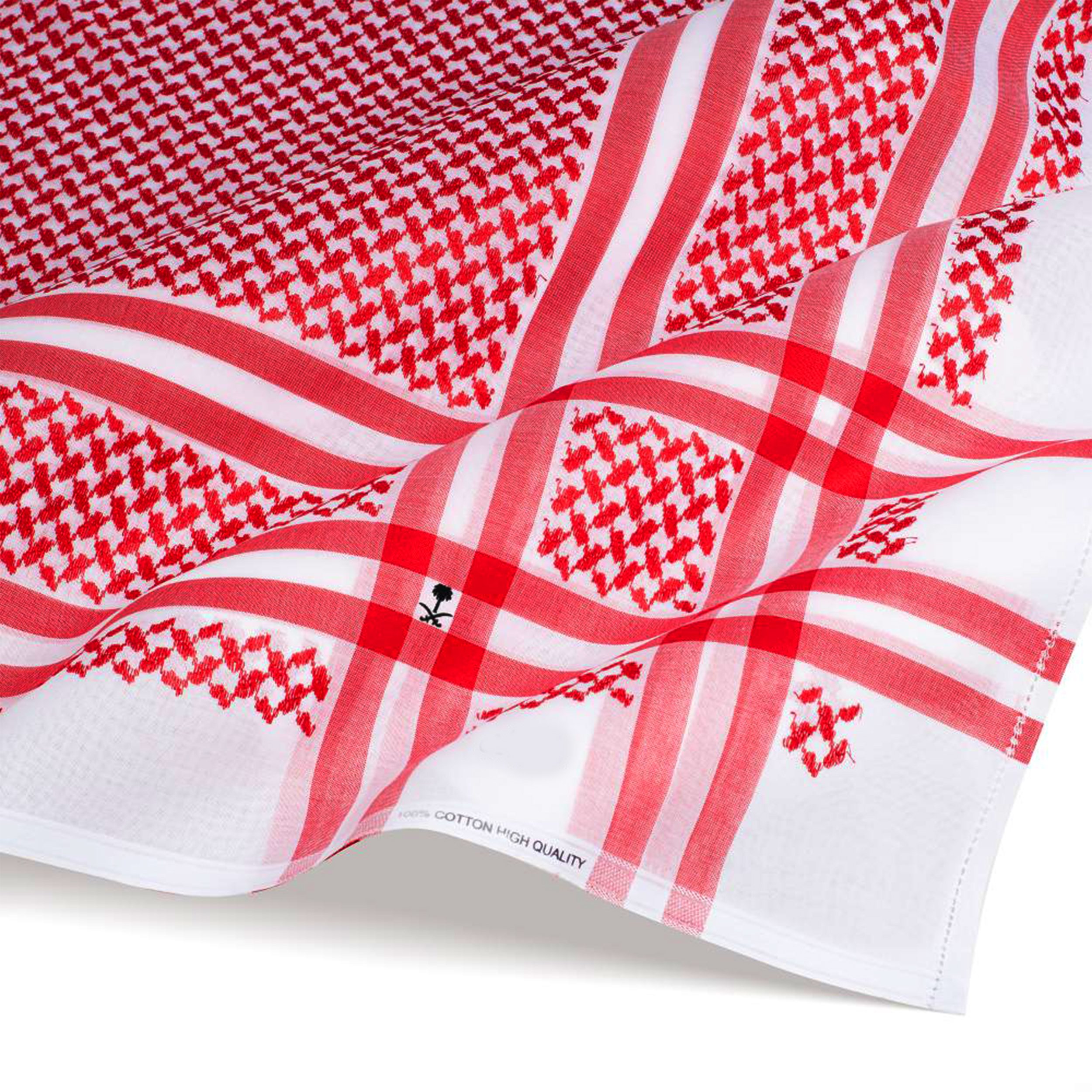 - مميزات شماغ ملكي خاص سجنتشرخامة قطنية عالية الجودة تمنحك راحة فاخرة.